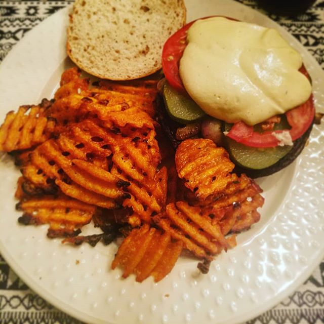 @beyondmeat #cheeseburger and #sweetpotato #fries. The cheese is a homemade #cashew #cheese sauce and it’s working. #vegan #plantbased #foodporn. May 28, 2018May 28, 2018 / Joshua Tomey View on Instagram https://ift.tt/2GXBZ6b Share this: Click to share on X (Opens in new window) X Click to share on Facebook (Opens in new window) Facebook Like Loading...
