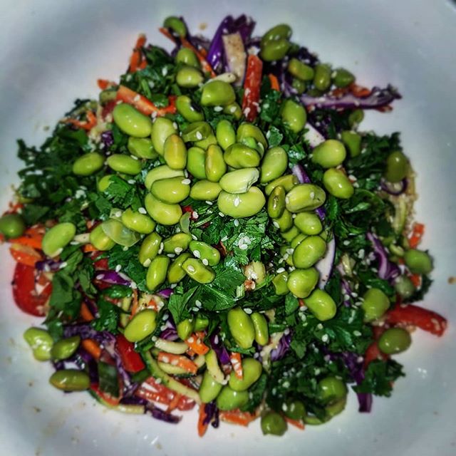 #rawvegan #padthai with #zucchininoodles and #edamame. Really crisp and fresh take on the classic. Nom Nom #friyay. — #vegan #plantpowered #plantbased #raw #foodporn