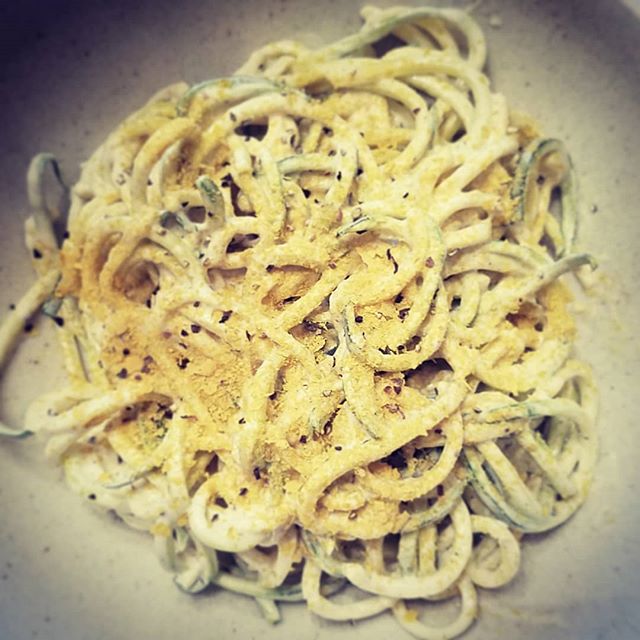 chilled #vegan #zoodles #cacioepepe This was goooooood. Perfect on a hot summer night. — #plantpowered #plantbased #foodporn #zucchininoodles #zucchini #cashews #nutritionalyeast #crackedblackpepper